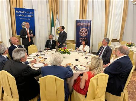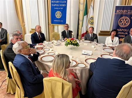 Lunedì 13 giugno 22 Conviviale con Consorti presso l'Hotel Excelsior in interclub con il R.C. Napoli Chiaja. Il Consocio Francesco Tavassi e Ambrogio Prezioso, Presidente dell'Associazione Est(ra)Moenia ci hanno intrattenuto sul tema: "Est(ra)Meonia: un progetto di riqualificazione culturale, sociale e urbana di un'area che unisce il centro antico di Napoli a Napoli Est". Un progetto di grande interesse per i numerosi soci presenti.