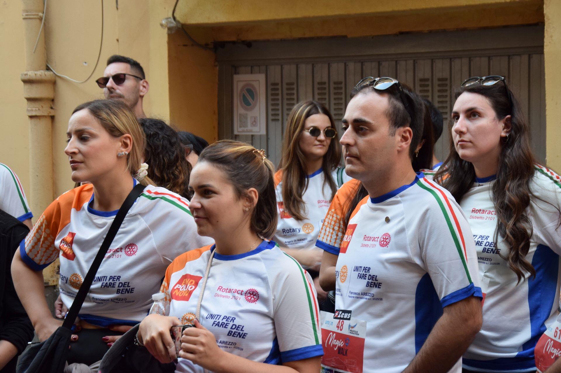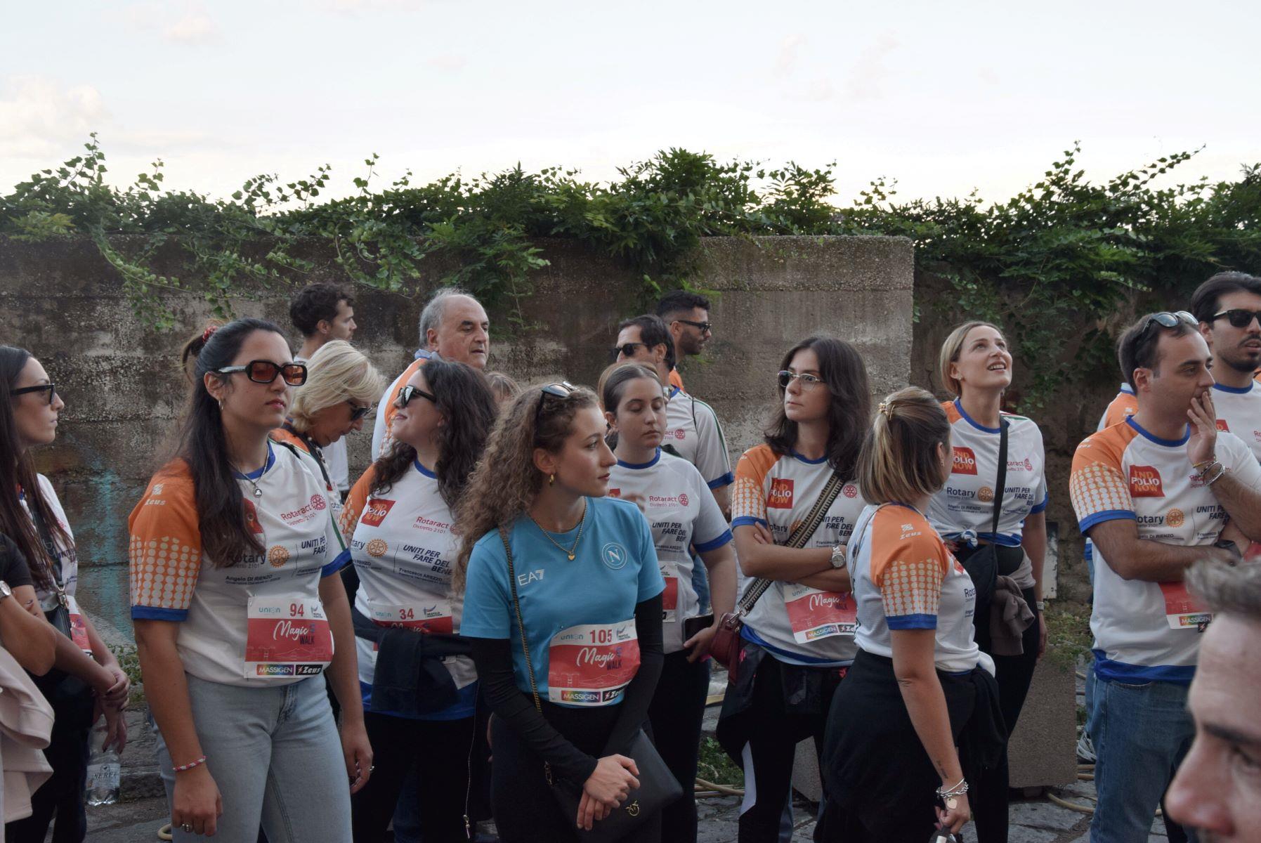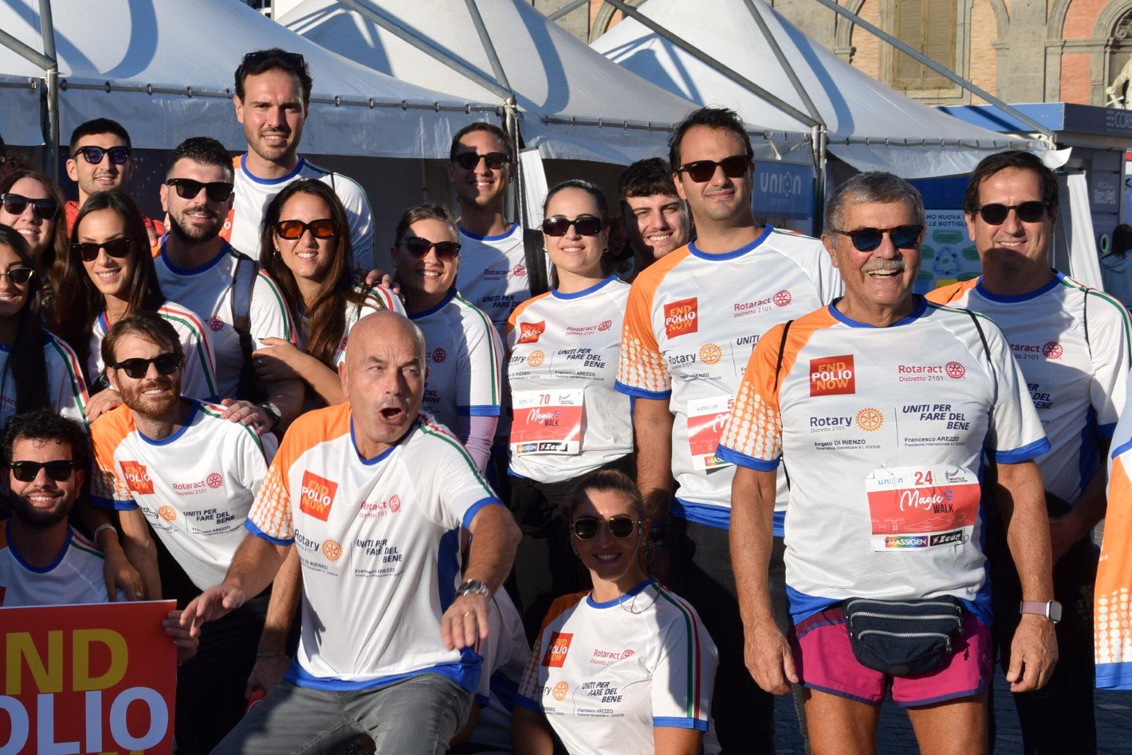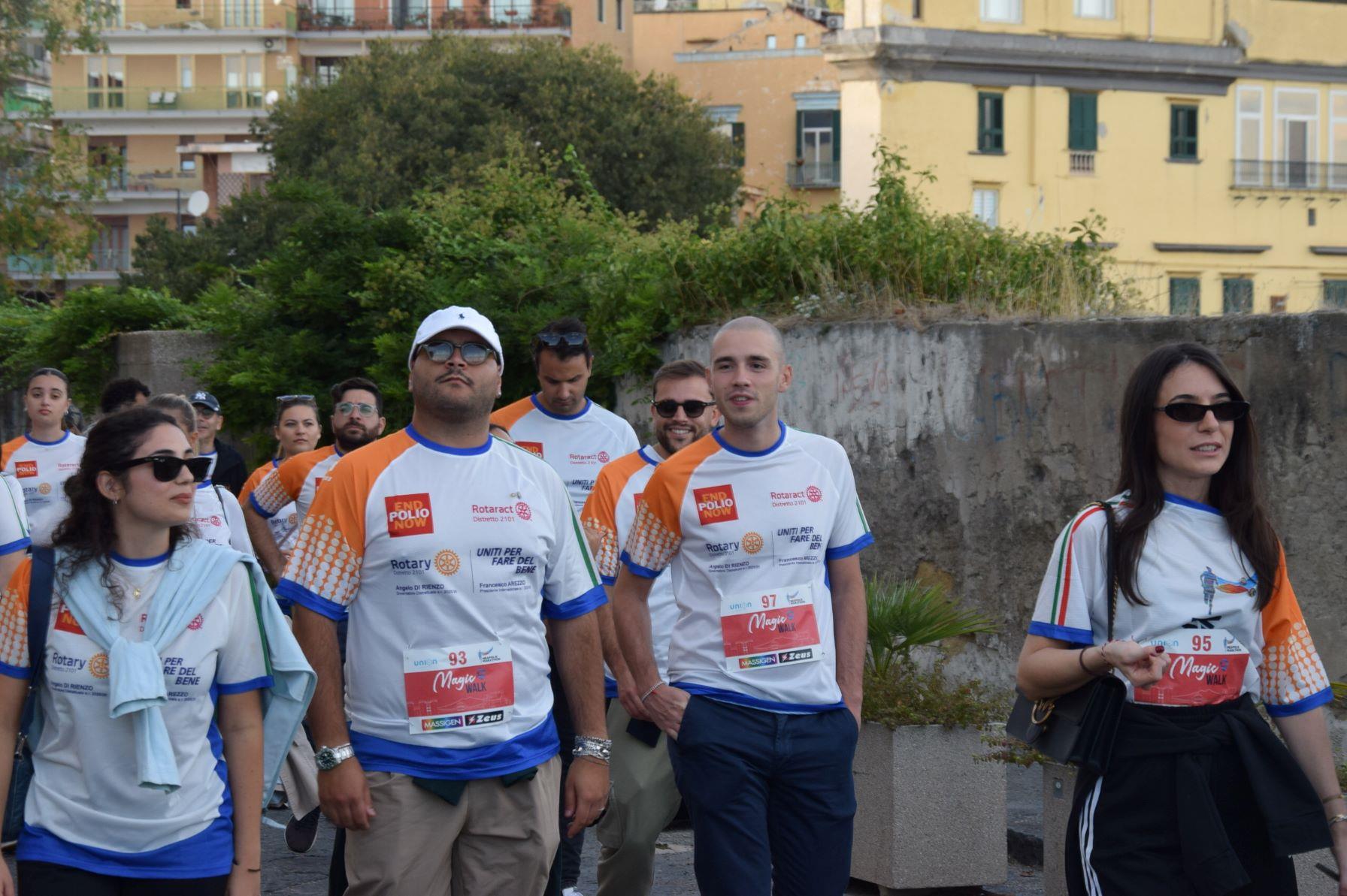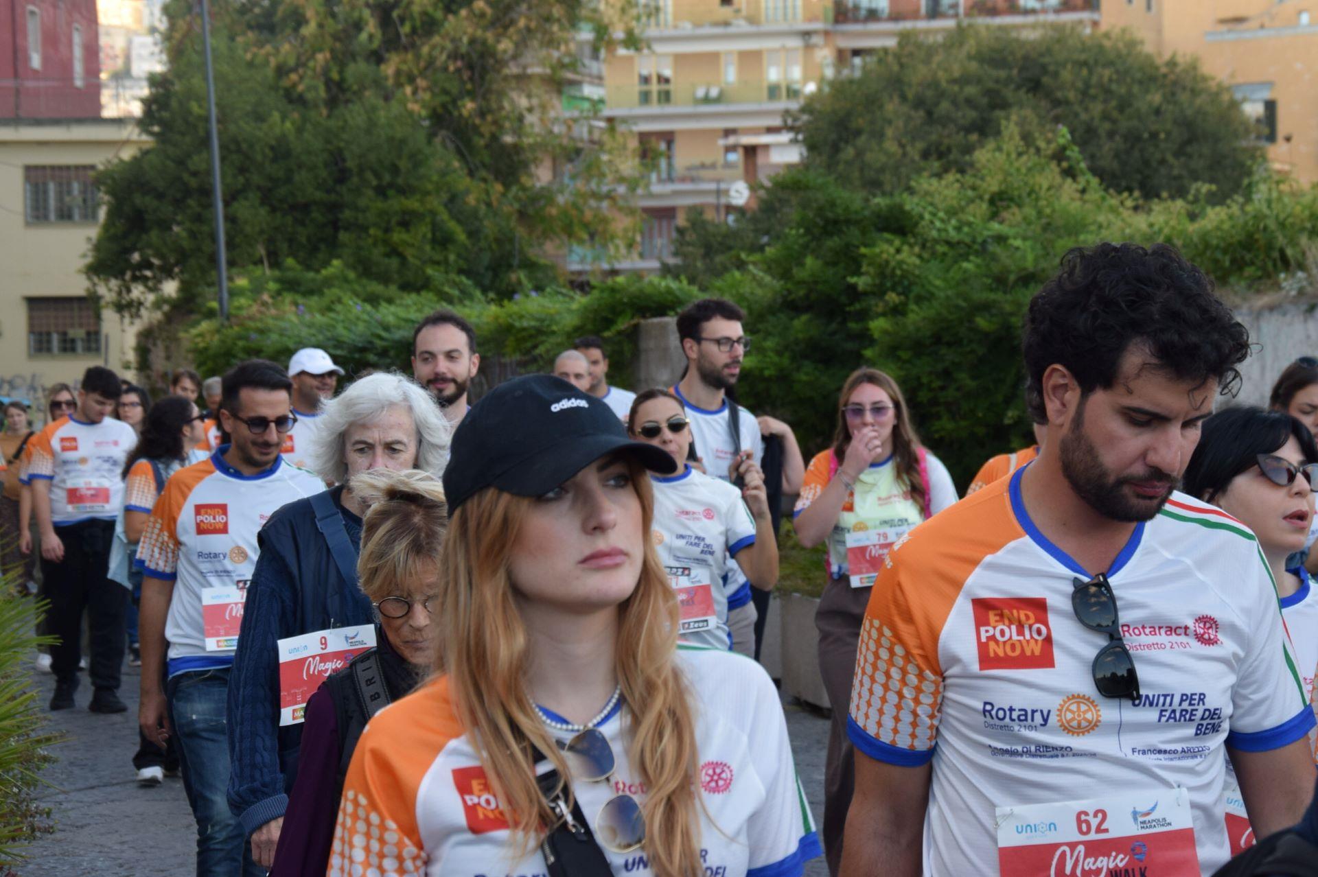 Anche questo anno il ROTARY CLUB NAPOLI NORD con il Presidente Renato Franceschelli, Rotary International Distretto 2101, d'impulso del Governatore Angelo Di Rienzo ha partecipato con i soci del Rotaract Club Napoli Nord, con la gentile consorte Cecilia Pingue e i soci Giuseppe Alfano, Angelo Di Lauro, Alessandro Falco e Paolo Pisanti alla #magicawalk, "una camminata" di oltre 6 km, nel quadro della #neapolismarathon, con una connotazione più propriamente turistica, con un interessante approccio alla storia dei luoghi attraversati, coordinata dall'impareggiabile maestria di Claudio Maria Lamberti. Fortissima la partecipazione con l'acquisto delle maglie il cui ricavato sosterrà la #EndPolioNow e la #rotaryfoundation