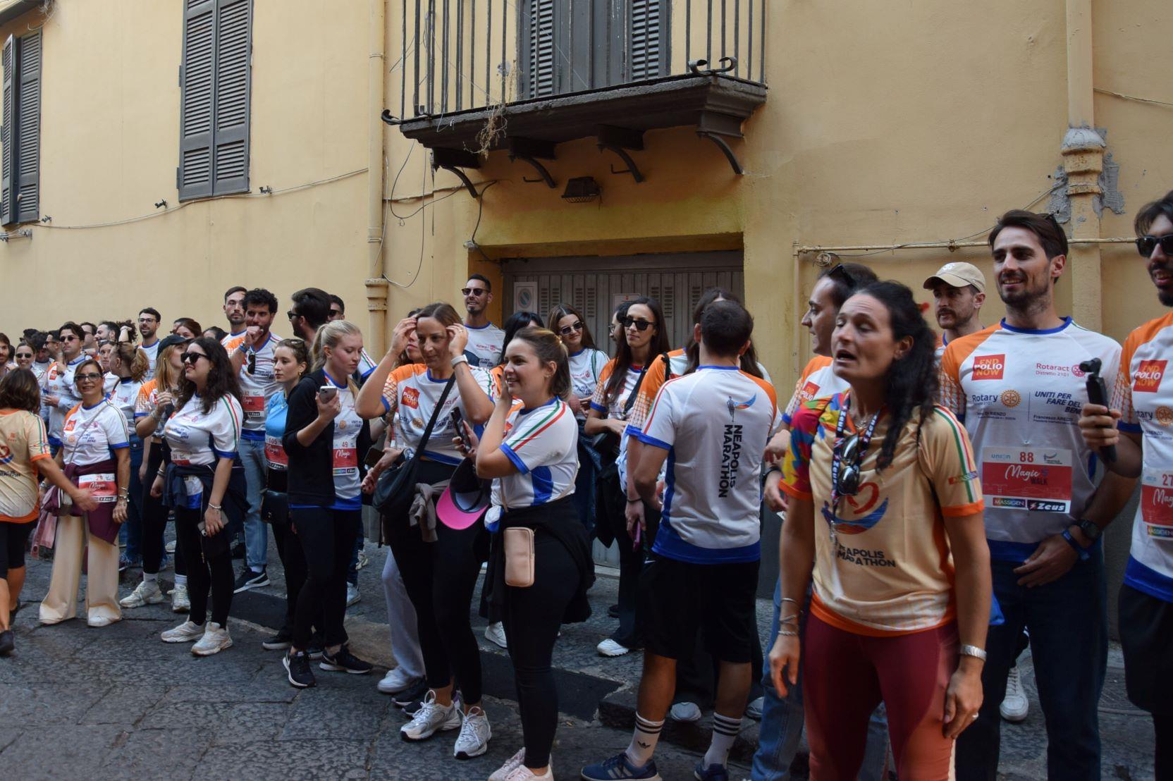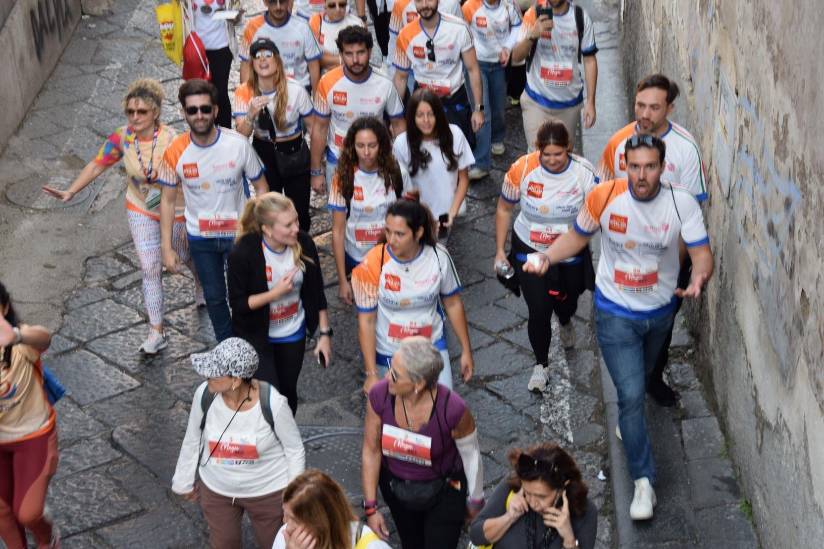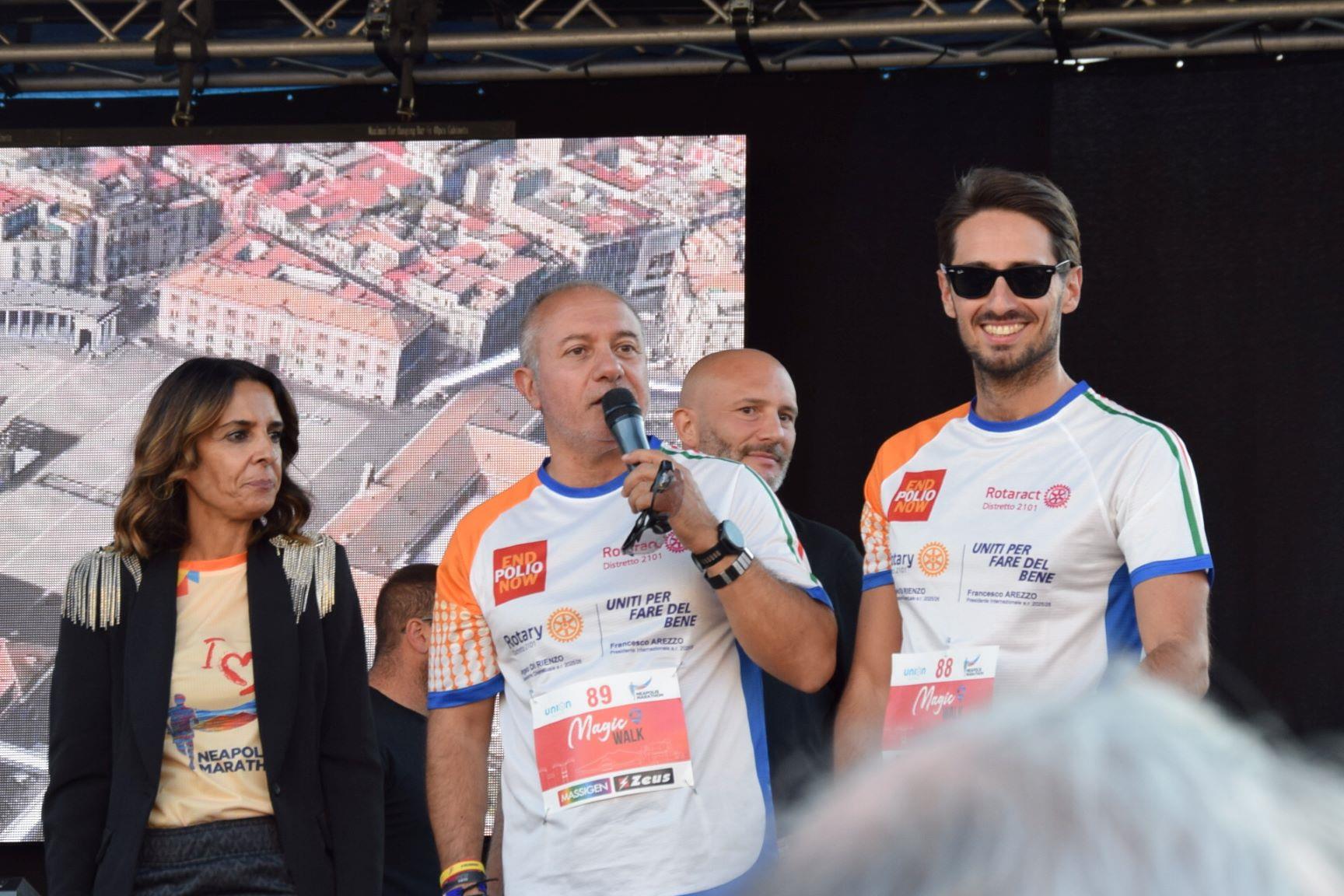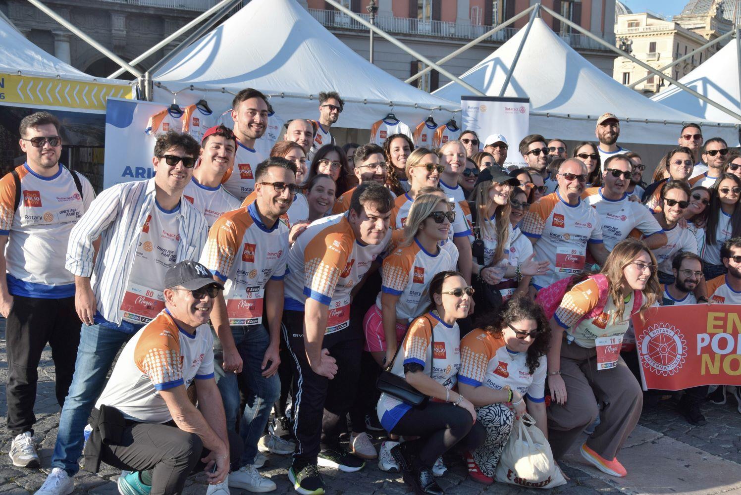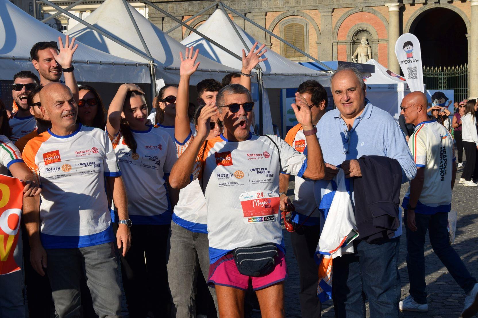 Anche questo anno il ROTARY CLUB NAPOLI NORD con il Presidente Renato Franceschelli, Rotary International Distretto 2101, d'impulso del Governatore Angelo Di Rienzo ha partecipato con i soci del Rotaract Club Napoli Nord, con la gentile consorte Cecilia Pingue e i soci Giuseppe Alfano, Angelo Di Lauro, Alessandro Falco e Paolo Pisanti alla #magicawalk, "una camminata" di oltre 6 km, nel quadro della #neapolismarathon, con una connotazione più propriamente turistica, con un interessante approccio alla storia dei luoghi attraversati, coordinata dall'impareggiabile maestria di Claudio Maria Lamberti. Fortissima la partecipazione con l'acquisto delle maglie il cui ricavato sosterrà la #EndPolioNow e la #rotaryfoundation