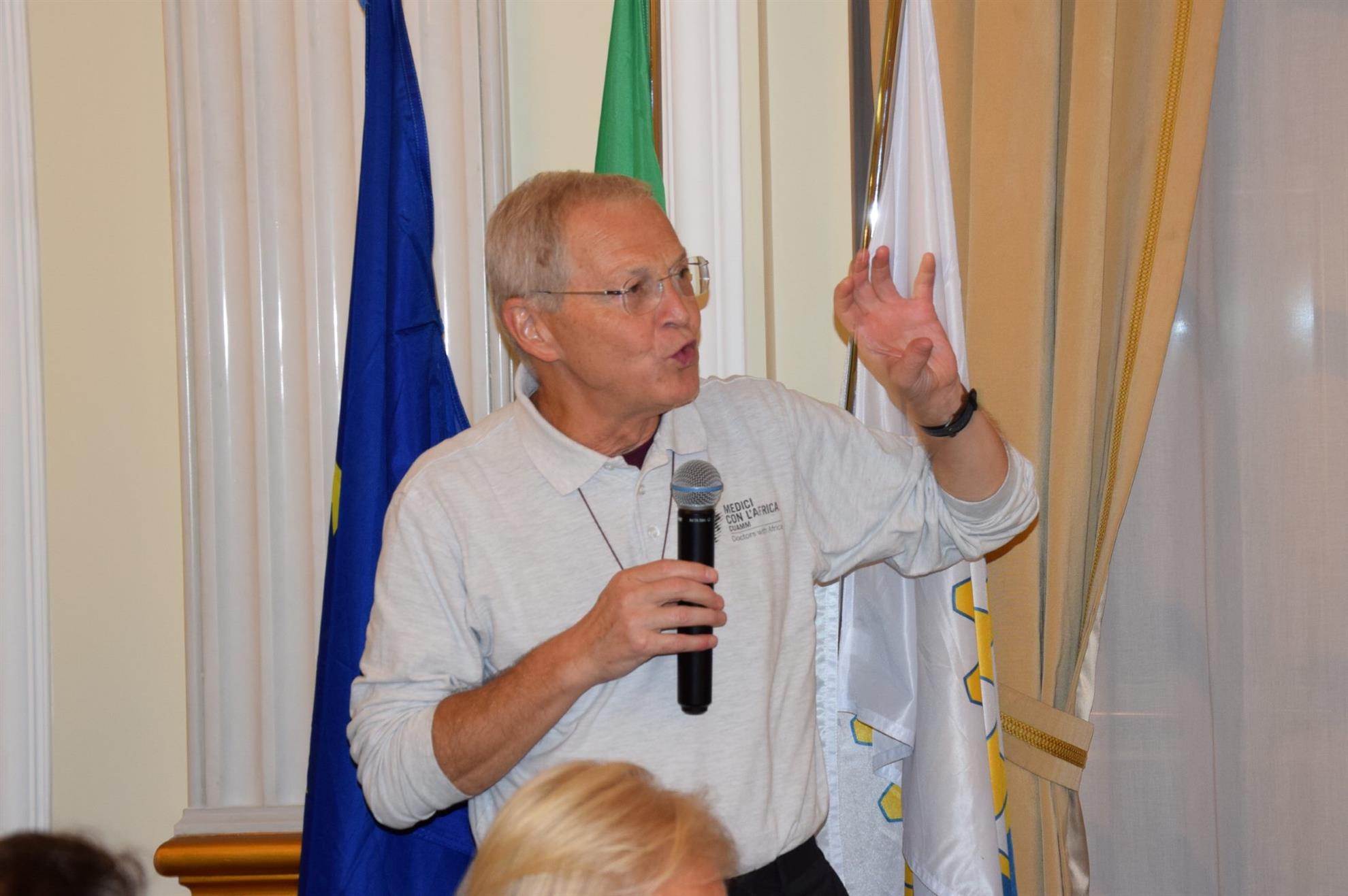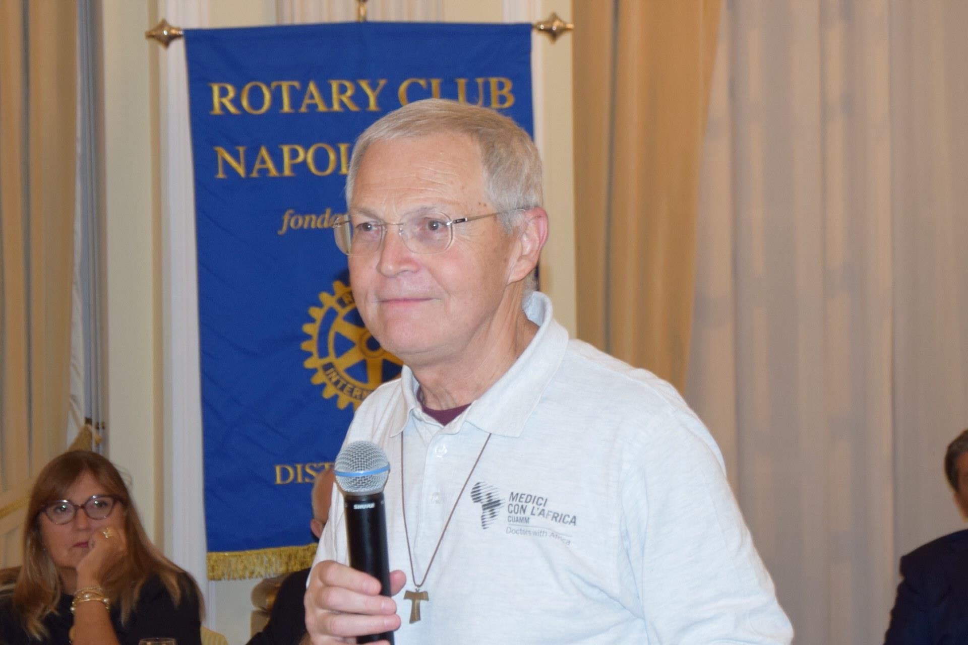 Conviviale con Consorti, il 29/09/25, all' Excelsior, del RCNANord, Presidente Renato Franceschelli, presente con Cecilia, R.I. D2101, Gov. A. Di Rienzo. Ospite della serata Don Dante Carraro, Direttore di Medici con l'Africa Cuamm, la prima Ong. in campo sanitario riconosciuta in Italia e la più grande organizzazione italiana per la promozione e la tutela della salute delle popolazioni africane. Alla presenza di una nutrita compagine di Soci e Consorti, del dr. M. Morcone Ass. Sicurezza Regione Campania, del dr. P. Manieri, Assistente del Governatore con Gabriella, del Prof. Ciro Costagliola, della dr.ssa Giulia Marchetti e del dr. Andrea Atzori, Don Dante ha ricordato, con la proiezione di slides, che la sua Associazione realizza progetti e si impegna nella formazione in Italia e in Africa di risorse umane per l'affermazione del diritto umano della salute, fondamentale per tutti. L'associazione nata nel 1950 celebrerà i 75 anni a Padova con il Convegno: "Crescere il futuro".