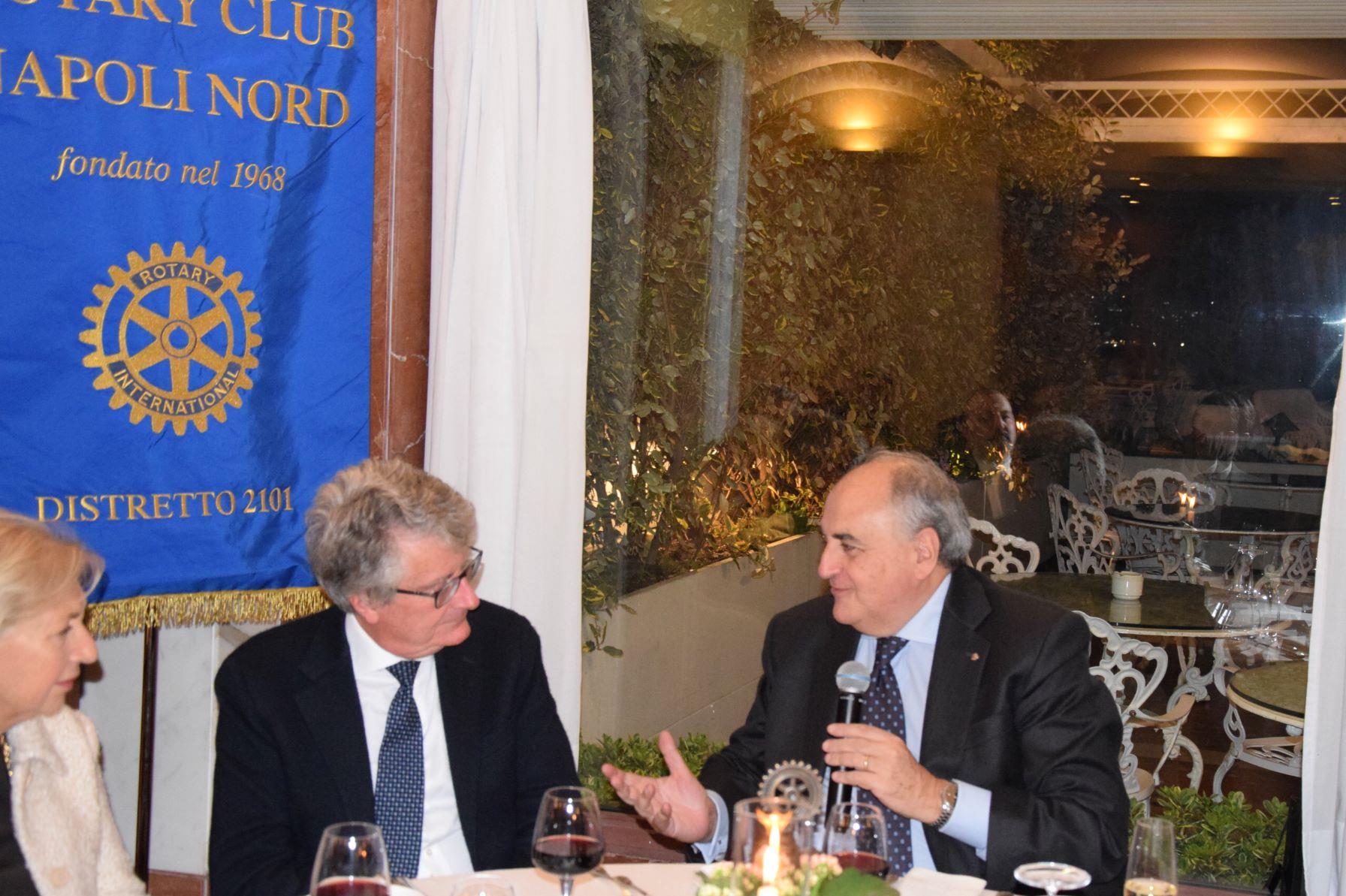 Conviviale con Consorti, presso l'Hotel Excelsior, lunedì 24/11/25, del ROTARY CLUB NAPOLI NORD, Presidente Renato Franceschelli, RID2101, Governatore Angelo Di Rienzo. Ospite della serata il Prof. Giorgio Ventre, Ordinario di "Sistemi per l'elaborazione delle informazioni", presso la Federico II e con un curriculum degno di grande nota, dal 2016, Direttore Scientifico dell' Apple Developer Academy" frutto della collaborazione tra Apple e Università, nel Campus creato nella vecchia fabbrica della Cirio, in uno spazio di oltre 6.500 metri, per progetti di innovazione, con la prospettiva di trovare nuovi talenti. Una "Over operation" con l'idea di sfruttare le "start-up", che negli anni ha coinvolto altre aziende che fanno innovazioni, con significativi risultati che hanno coinvolto diverse realtà professionali con esperienze pratiche, realizzando un recupero importante nella realtà del territorio anche dal punto di vista economico. Vivace il dibattito che ne è seguito