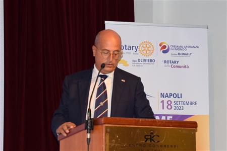 Anche i Soci del Rotary Club Napoli Nord D2101, Presidente Francesco Tavassi, lunedì 18/09/23, all’Hotel Royal/Continental, hanno partecipato all’incontro con Gordon McINALLY Presidente del Rotary International. Dopo gli onori alle bandiere con gli inni, i saluti di Ugo Oliviero, Governatore del R.I. D2101, di Roberto Mauri RRD del Rotaract, di Pierfrancesco Valentini, Console Onorario del Regno Unito, e gli interventi del Governatore, di Vincenzo Barretta su “La salute emotiva comportamentale” di Giuseppe Nardini su “La Rotary Community Corp”, di Bashar Asfour su “La Polio…”, il Presidente McINALLY ha letto la sua allocuzione su come il Rotary può “Creare Speranza nel mondo”. L’incontro, prima della cena, si è concluso, tra scroscianti applausi, con il Concerto della “Rotary Youth Chamber Camera” presentato da Maria Sbeglia e diretto dal Maestro Luigi Grima.
