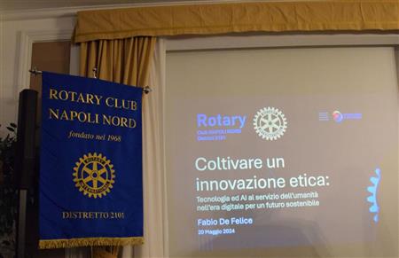 Conviviale di grande interesse lunedì 20/05/24 all'Excelsior del RCNapoliNord, Pres. F. Tavassi R.I. D2101 DG U. Oliviero. È intervenuto il Consocio Prof. Fabio De Felice, dell’Università degli Studi Parthenope su: "Tecnologia e Intelligenza artificiale al servizio dell'umanità nell'era digitale per un futuro sostenibile". Dopo aver evidenziato lo sviluppo della tecnologia, il relatore si è chiesto dove ci porterà l'IA che impara dalle nostre azioni. Cambierà il modo di lavorare, sviluppare relazioni e gestire processi innovativi. IA offrirà grandi opportunità. Certo molti mestieri spariranno. Si deve indirizzare la tecnologia e il processo di cambiamento, creando nuovi modelli e migliorando quelli esistenti. Questo tipo aperto di approccio muterà la nostra vita. Non bisogna spaventarsi per quanto avverrà ma dovremo con forza è capacità e soprattutto sotto il profilo etico gestire noi il processo tecnologico digitale in atto. Numerosi gli interventi tra i presenti.