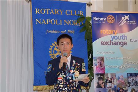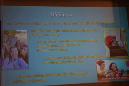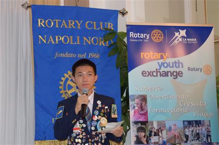 Lunedì 21/10/24 all' Hotel Excelsior, nel corso della tavola Rotariana del ROTARY CLUB NAPOLI NORD, Presidente Giuseppe Alfano, Rotary International Distretto 2101, Governatore Antonio Brando, Claudio Polese, Presidente del RYE - Rotary Youth Exchange, con la partecipazione della Prof.ssa Stefania Galdiero, Assistente del Governatore, del quale ha portato i saluti, ha illustrato le importanti opportunità del "Progetto" che prevede, per i giovani, scambi annuali, a breve termine, Camp e di nuove generazioni family to family". Quattro giovani leaders, dei quali uno proveniente da Taiwan, hanno raccontato, orgogliosi nelle loro giacche piene di splendidi "pin" a testimonianza dei loro incontri, con le immagini, le loro esaltanti esperienze. Una serata di grande interesse piena di utili informazioni per partecipare all'iniziativa così come ha raccontato ai presenti la Consocia Liliana Speranza che ha utilizzato questa iniziativa per la figlia.